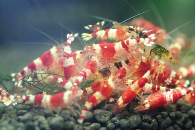 小さな粒々の餌の場合、各シュリンプが好きな場所に持って行って食べ易いサイズ。
